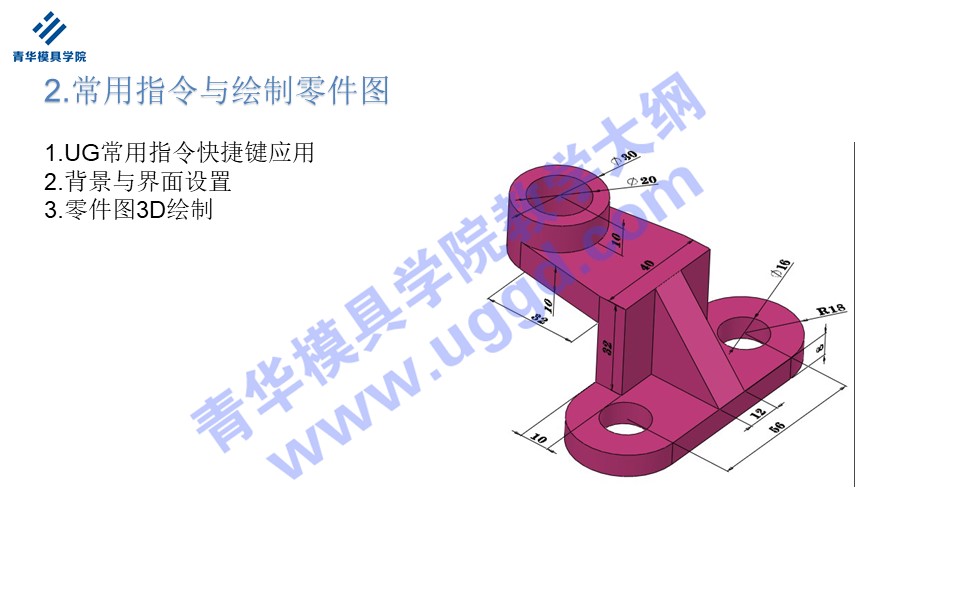• 首页>课程大纲 >UG基础入门课>UG基础课大纲 >2.常用指令与绘制零件图