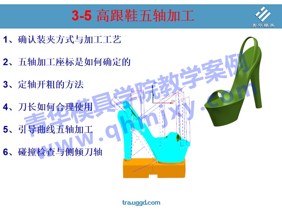 • 首页>课程大纲 >五轴数控编程>五轴编程第三阶段 >3-5 高跟鞋五轴加工