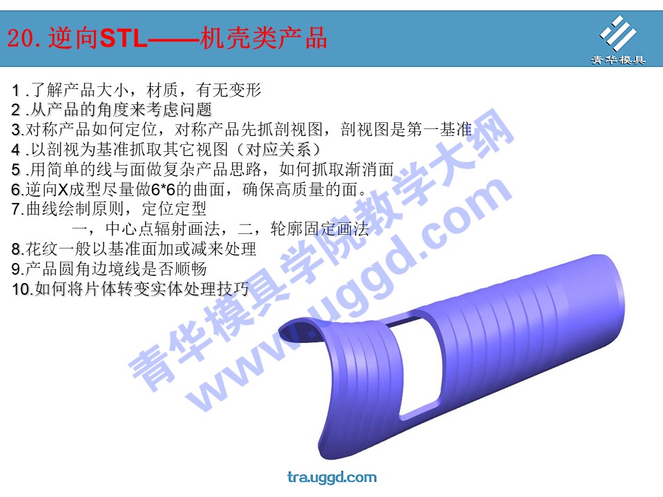 • 首页>课程大纲 >UG产品设计>UG产品设计第二阶段 >20.逆向STL——机壳类产品
