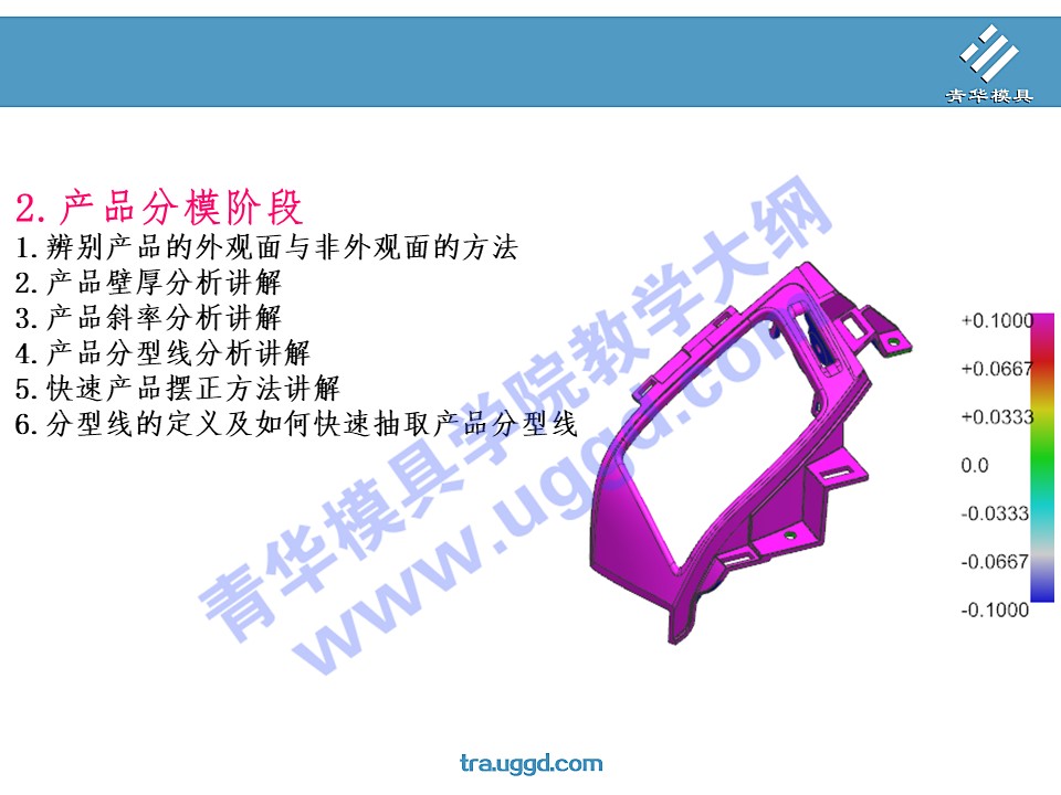 • 首页>课程大纲 >塑胶模具设计>UG塑胶模具设计第一阶段 >2.产品分模阶段