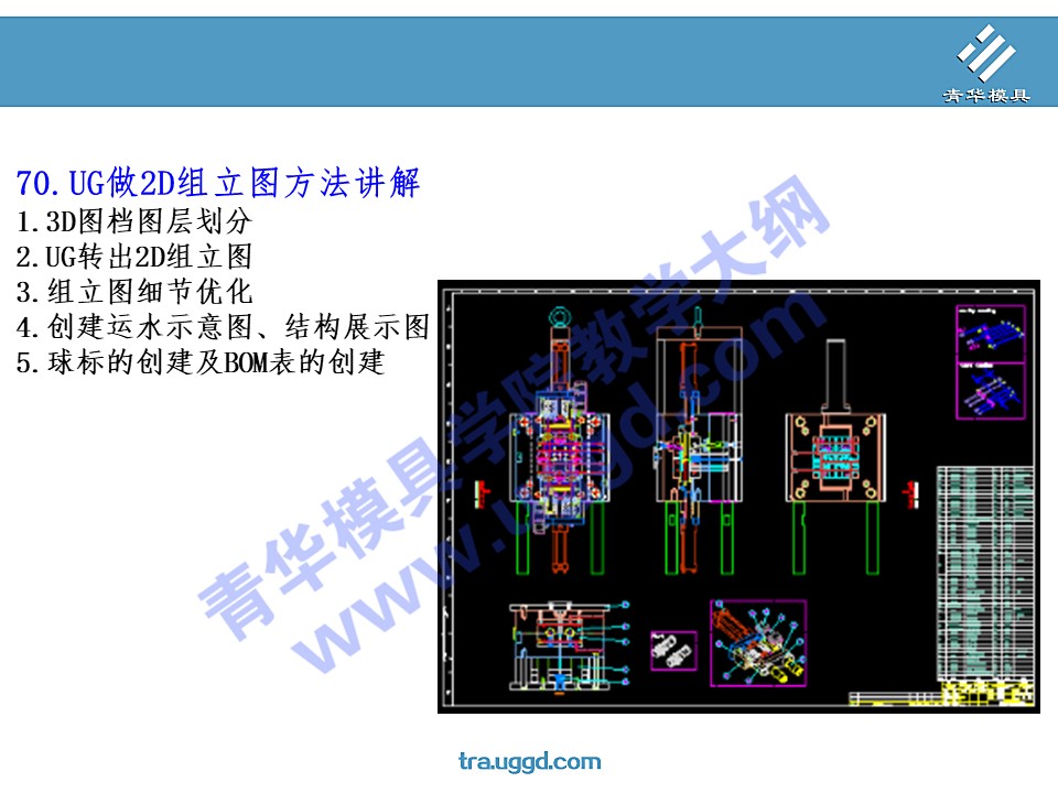 • 首页>课程大纲 >塑胶模具设计>UG塑胶模具设计第三阶段 >70.UG做2D组立图方法讲解
